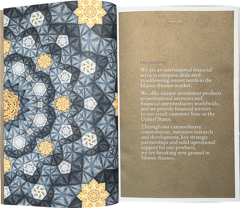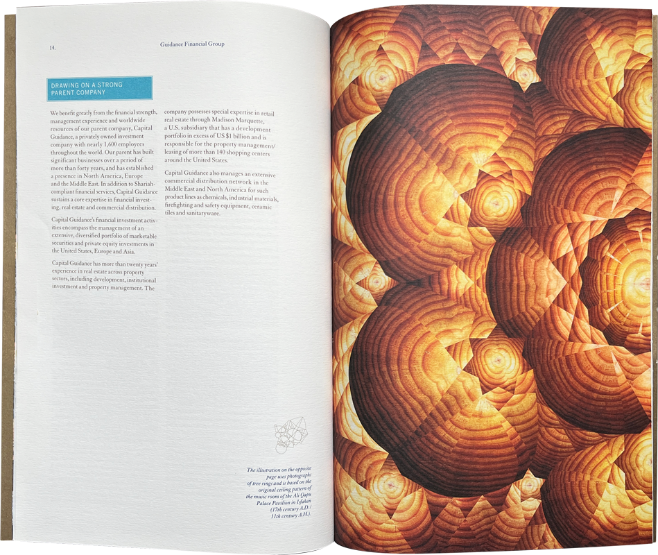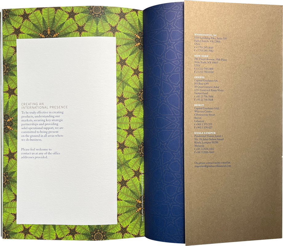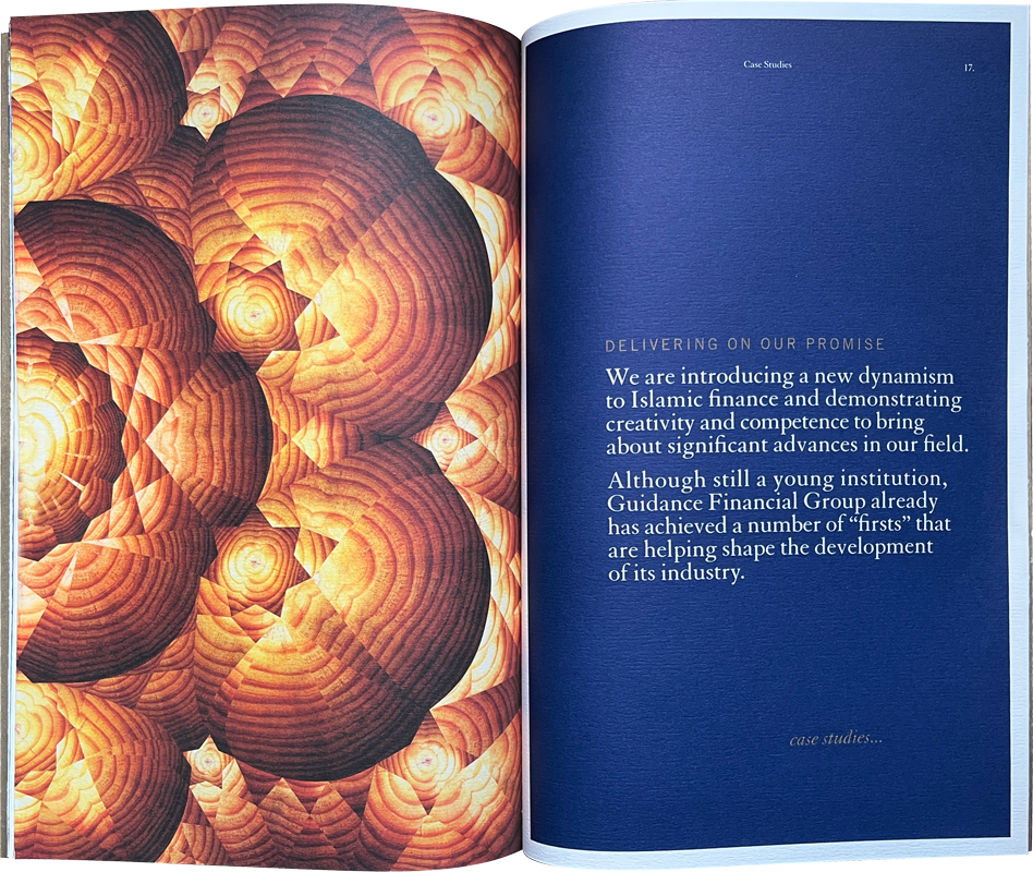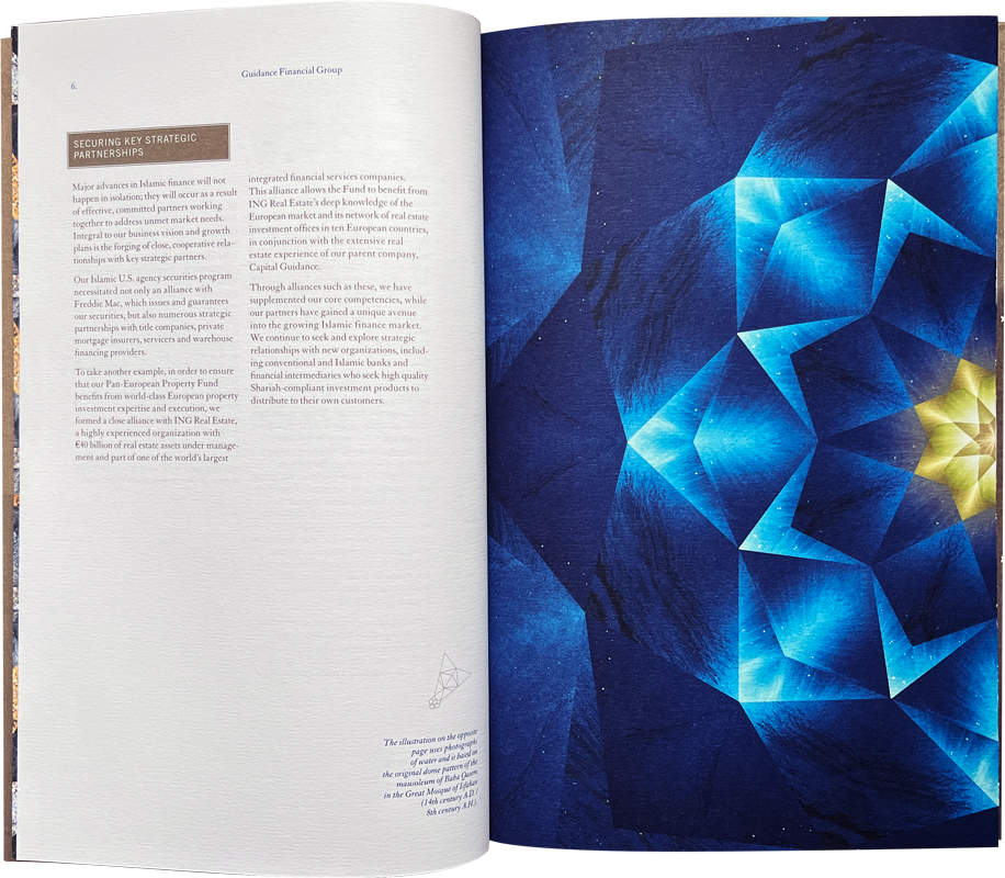 2004 Corporate brochure for Guidance Financial Group, an Islamic finance services company.