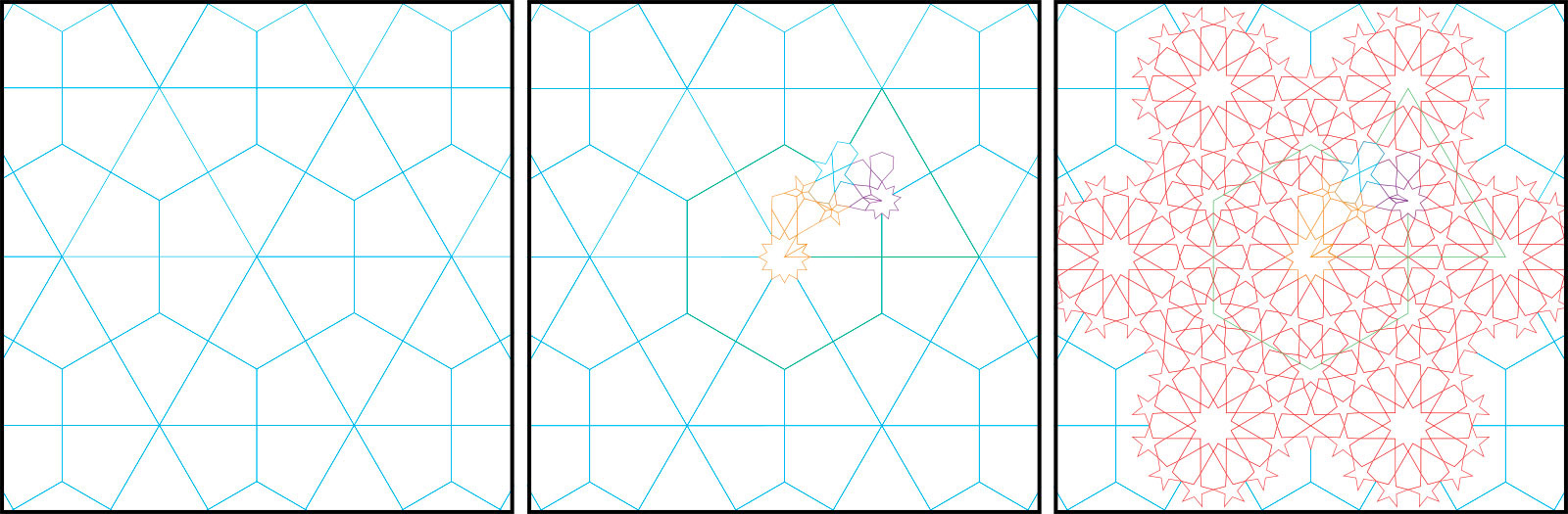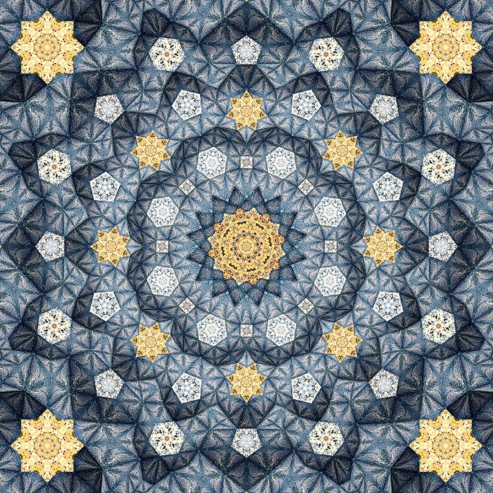 Patterns are based on Islamic tiles and vaulted mosque ceilings using elements from nature such as plants, stone, water and wood.